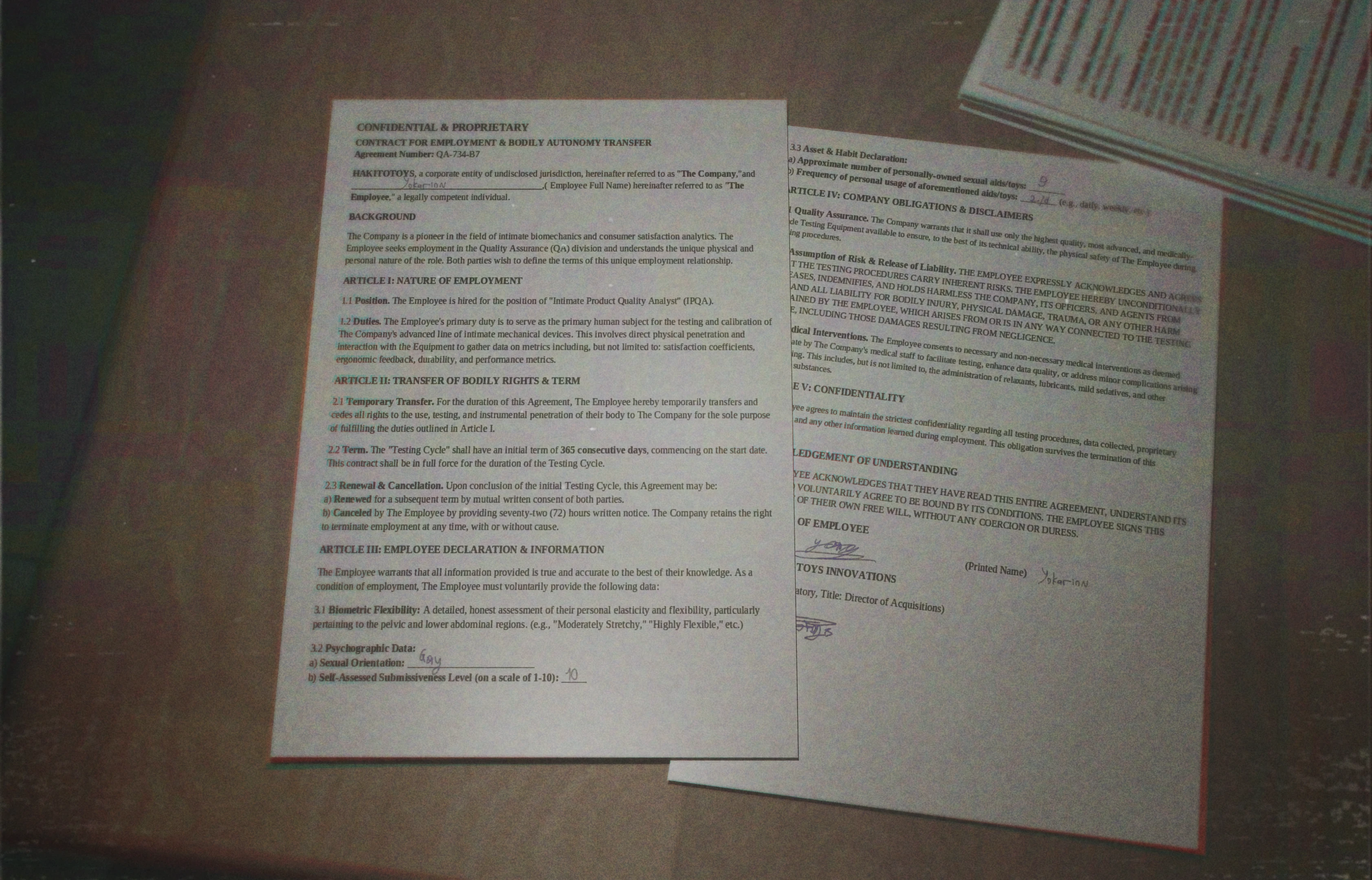 So the job in question is just “Quality Assurance” tasks with “extensive testing” requirements. Where you have to test products and use monitoring devices. That’s it. So easy! – Thought Yokarion and he instantly signed the contract without reading it. Which was a mistake… Or not?..